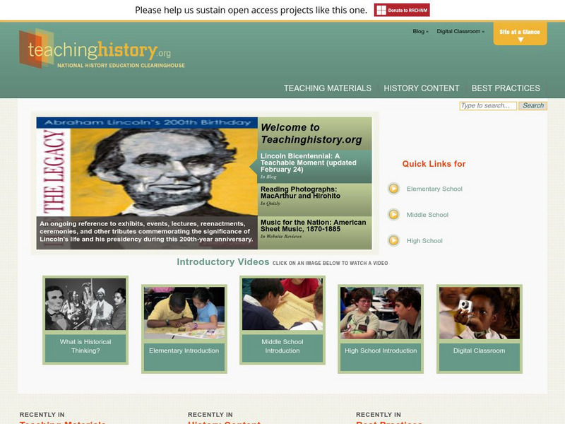 A vast resource filled with information on teaching history at all grade levels. There are links to podcasts, teaching materials, primary source documents, videos, and best practices in the teaching of history. Don't miss this fantastic...