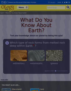 Time to rock and roll! Young scientists test their knowledge about rocks found on Earth and what they tell scientists. A 10-question quiz focuses on the different types of rocks, how they are formed, and what they are made of.