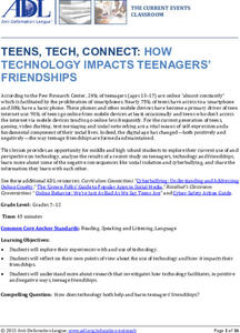 To understand their time spent online, class members chart their use of technology during early morning hours, during school, after school, in the evenings, and on weekends. They then read several reports about how social media...