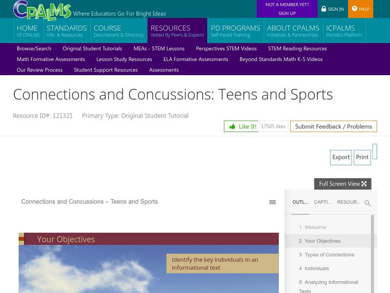 Cpalms: Connections and Concussions: Teens and Sports