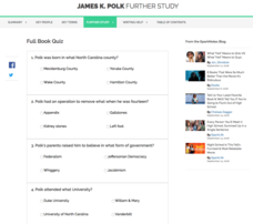 In this online interactive history quiz worksheet, students respond to 48 multiple choice questions about James K. Polk. Students may submit their answers to be scored.