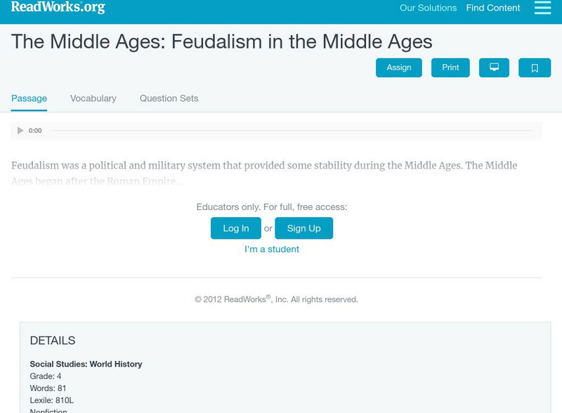 Read Works: The Middle Ages Feudalism in the Middle Ages