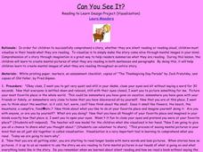 Students discuss how to visualize while reading. They read The Thanksgiving Day Parade and Old Yeller. Students relax and picture their favorite place. They share what they saw and discuss the concept of visualization. Students visualize...