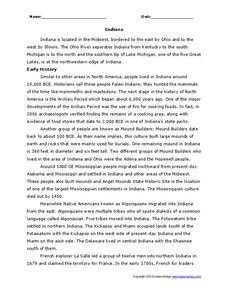 In this Indiana worksheet, students read a two page text about the history of the state of Indiana. Students answer 10 true and false questions.