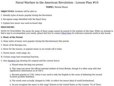 Students listen to and identify styles of music popular during the American Revolution. They recognize songs identified with the Royal Navy and analyze how music was used on board ship.