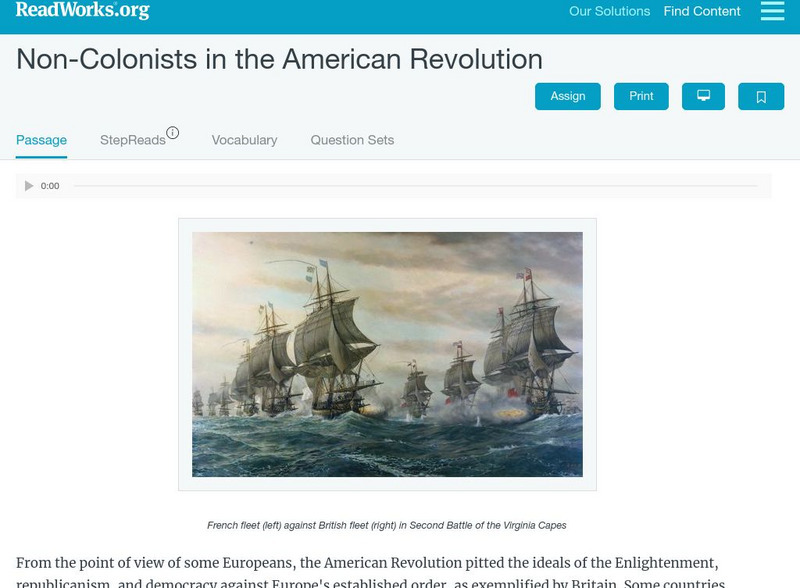 Read Works: Non Colonists in the American Revolution