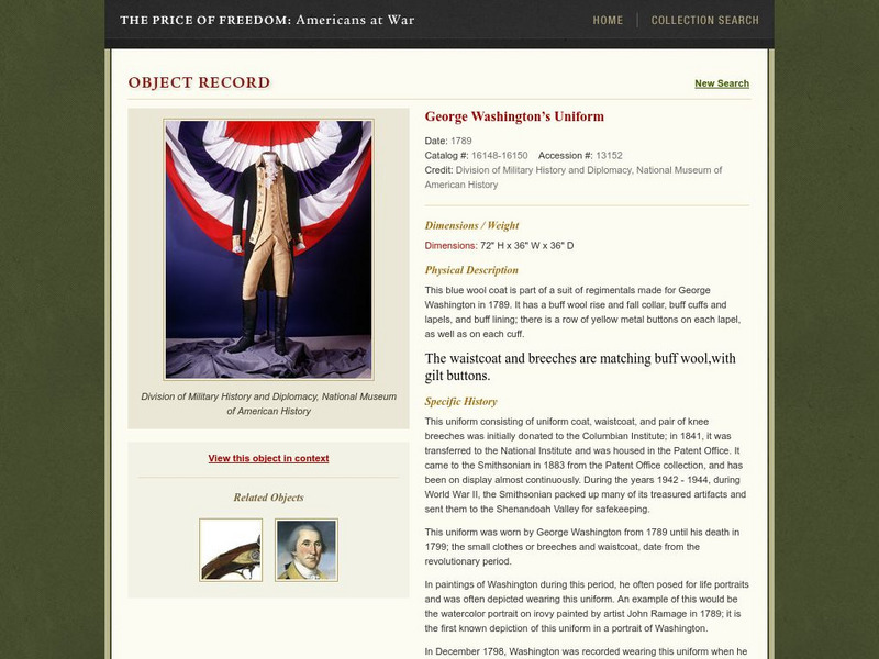 National Museum of American History: Price of Freedom: George Washington's Uniform