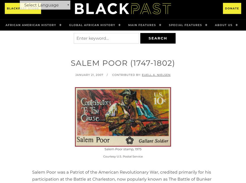 Read this encyclopedia entry that recounts the participation of Salem Poor, a freed black man, who served in the Revolutionary War.