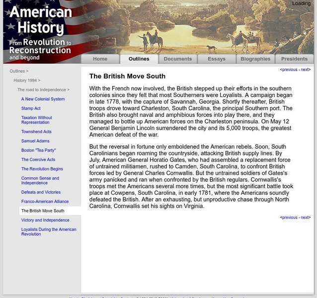 American History: Outlines: The British Move South