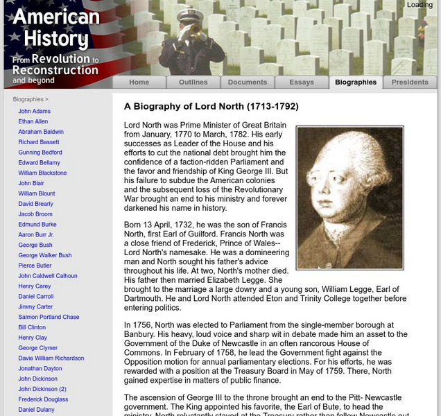 American History: Biographies: Lord North (1713 1792)