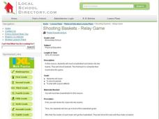 Students demonstrate how to shoot baskets during a relay race. In this physical education lesson, students work in teams and shoot basketballs into the hoops as fast as they can. Each person must make one shot. The first team to finish...