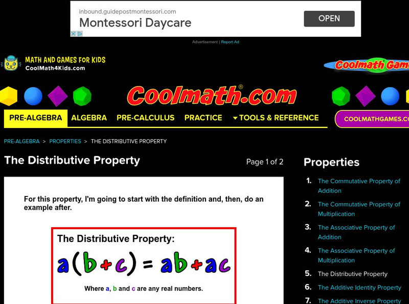 [Free Registration/Login may be required to access all resource tools.] Learn to identify when to use the Distributive Property.