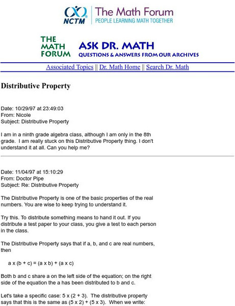 The Math Forum: Ask Dr. Math: The Distributive Property