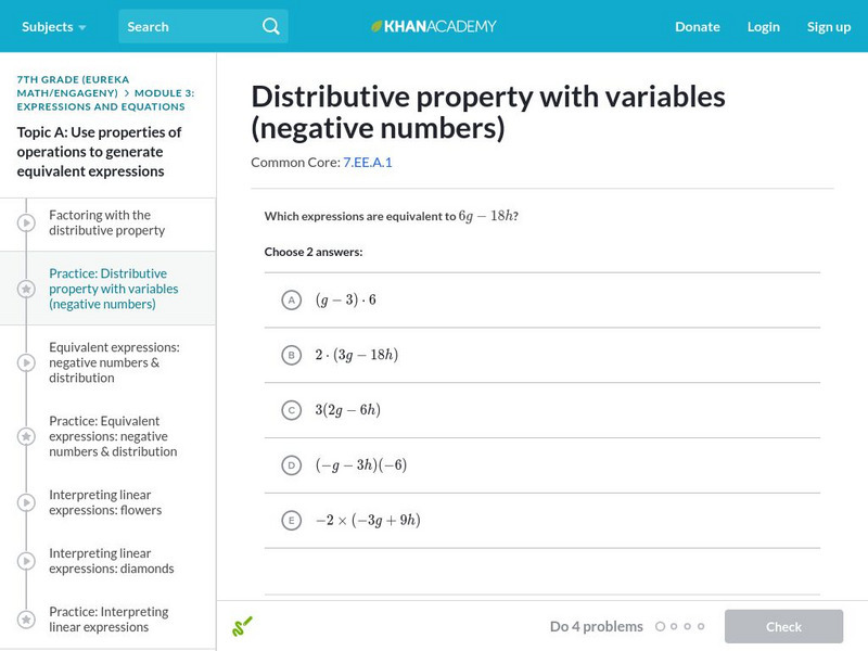 Khan Academy: Distributive Property With Variables Negative Numbers