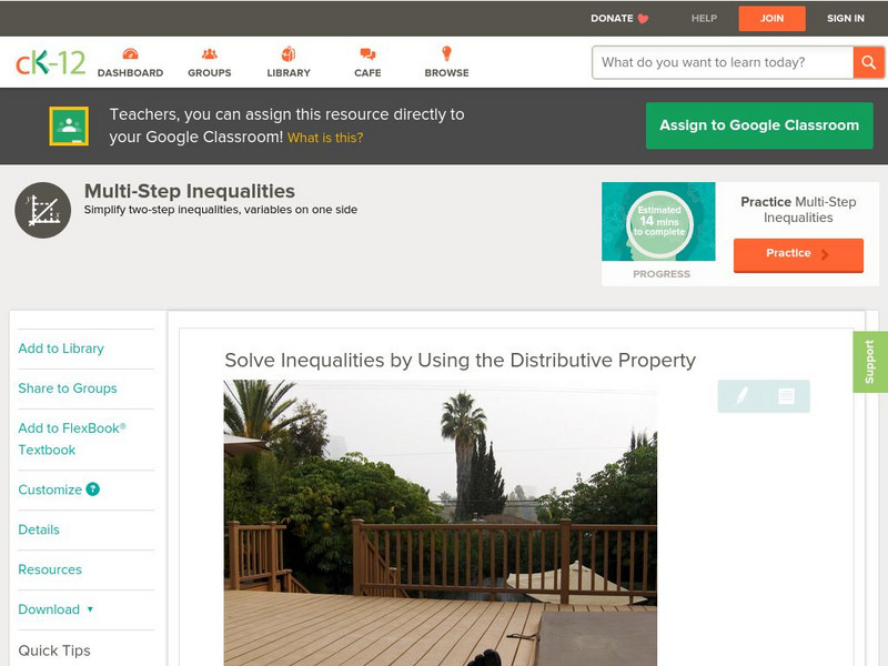 Ck 12: Algebra: Inequalities With the Distributive Property