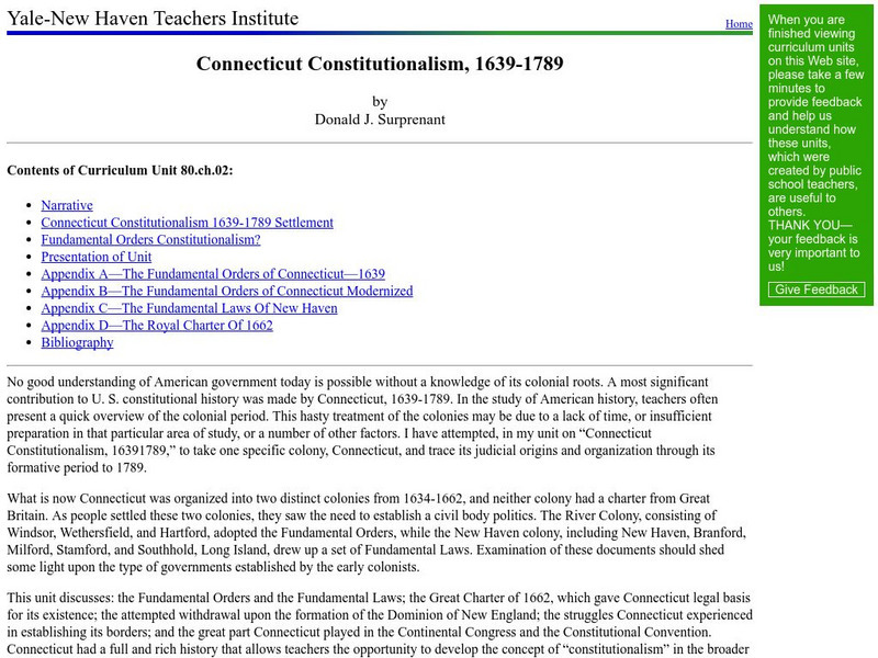 Yale New Haven Teachers Institute: Connecticut Constitution, 1639 1789