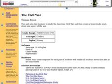 Study and research the American Civil War in this explanatory writing lesson. Middle schoolers complete six activities to learn about the American Civil War and soldiers' views of the war. The lesson includes several options to complete...