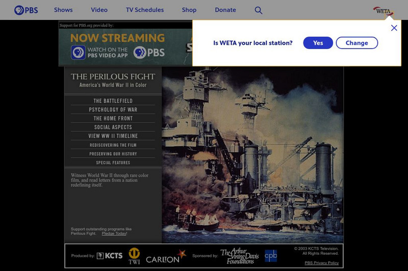 Online home of the PBS documentary "The Perilous Fight" provides access to an eclectic array of color photographs and films of World War II at home and abroad. Overviews, contextual clues, maps, letters, and similar resources can be...