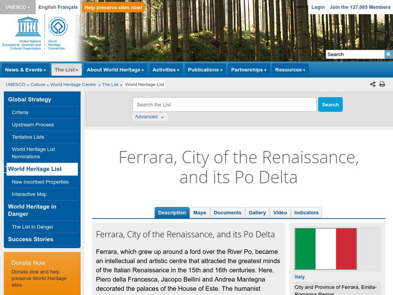 This World Heritage website features Ferrara, a focal point for the Italian Renaissance in the 15th and 16th centuries. Ferrara is known as well as the place where modern town planning began. Found here are a description, a map,...