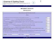 In this online interactive English vocabulary skills instructional activity, high schoolers answer 10 matching questions which require them to fill in the blanks in 10 sentences. Students may submit their answers to be scored.