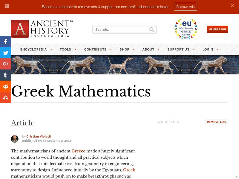 Discusses the major cultural influences on the development of mathematics in ancient Greece, and how the Greeks went on to surpass those cultures. The work of the Pythagoreans and of Euclid are described, along with some famous...