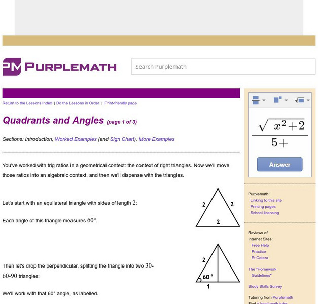 Explains the basic concept of right triangles with step-by-step instructions and methods for solving specific problems on your own relating to this topic.