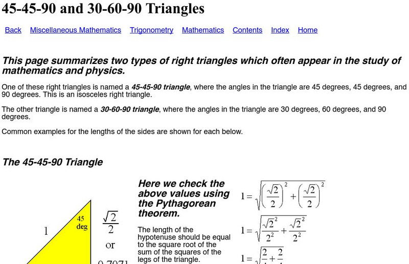 The formulas for 45-45-90 and 30-60-90 triangles and the use of the Pythagorean theorem to prove the formulas.
