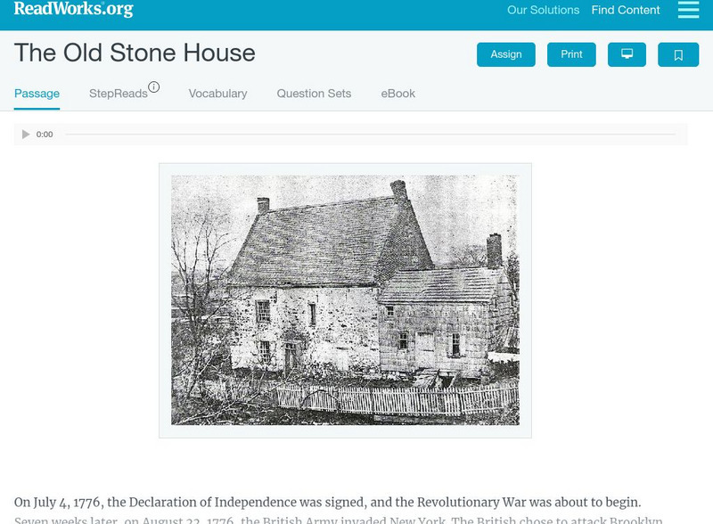 [Free Registration/Login Required] Intended to support elementary students' reading comprehension, historical information is provided. The significance of "The Old Stone House" during the Battle of Brooklyn in the American Revolution is...