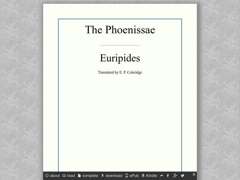The ancient Greek tragedy, The Phonessae, or The Phoenician Women, is offered here in a clearly formatted, full text version at this site.