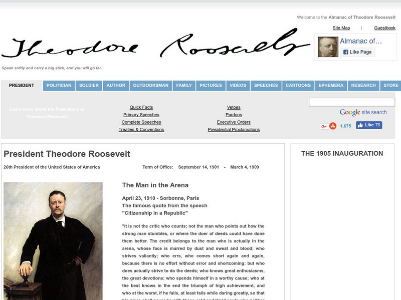 This site has everything about Theodore Roosevelt. Find his speeches, his family life, videos, his time in the military, as well as his presidency. The site is well laid out and easy to navigate.