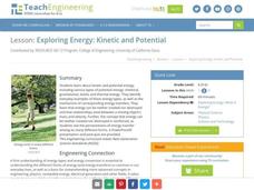 The potential of the energy in the class is moving. The third segment in a six-part unit on energy provides a deeper understanding of kinetic and potential energy. Learners understand the relationship between mass, speed, and energy and...