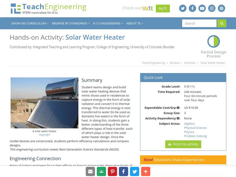 Teach Engineering: Solar Water Heater