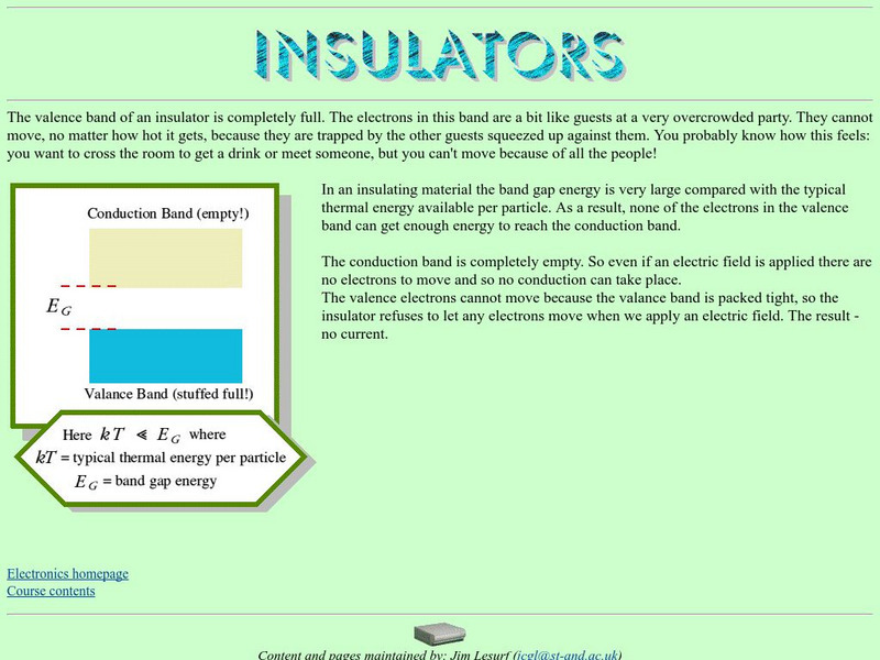 The nature of insulators is described at the atomic level. Band gap theory is used to explain what distinguishes insulators from conductors.