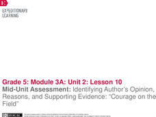 What do you think? Scholars complete a mid-unit assessment in which they identify an opinion in Courage on the Field along with evidence that supports it. After the assessment, pupils complete Tracking My Progress, Mid-Unit 2...