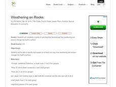 Learners identify how weathering and erosion effect the Earth's surface. In this weathering and rocks lesson, students study various types of rocks in water and brainstorm ways the Earth's surface changes. Learners view an interactive...