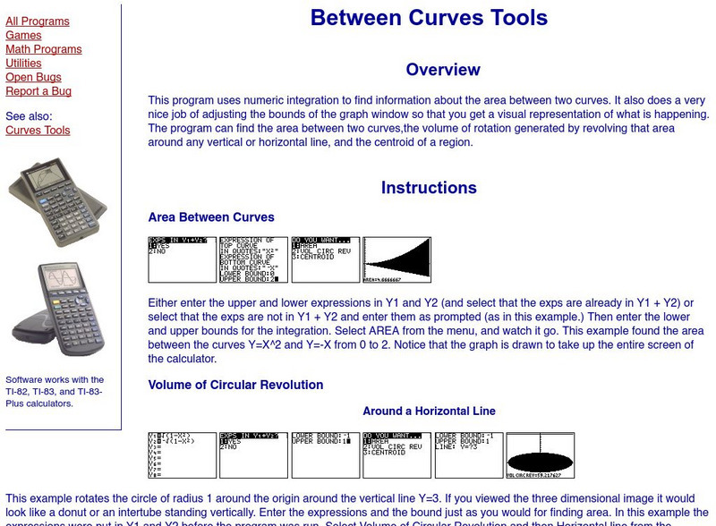 This site provides instructions for programs you can put into a graphing calculator to find the area between curves.