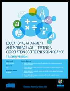 Do women with college degrees get married later? Using a provided scatter plot of the percentage of women who earn bachelor's degrees and the median age at which women first get married over time, pupils conduct a linear regression...