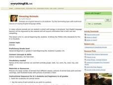 Students, in beginning and advanced beginning ESL levels, use English in an animal lesson.