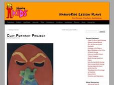 Learners discuss facial proportions and mix colors similar to flesh tones. In this art lesson, students draw and paint a portrait and then translate this image into a 3D form using clay.