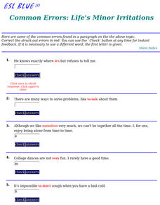 In this common errors worksheet, students fix the sentences with common spelling, grammar, or language errors in them. Students complete 15 sentences.