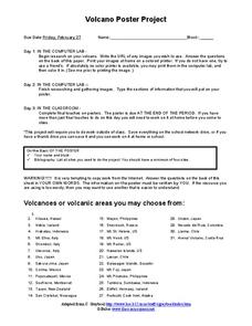 In this volcano worksheet, students choose a volcano from a given list to do research on using the computer lab. Students gather information about the volcano and answer 20 questions. They create a poster with graphics and text about...