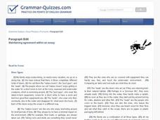 In this editing activity, students read 4 paragraphs and edit the sentences in them. Students edit 28 sentences total and can check their answers.