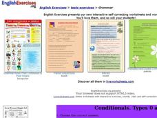 In this online interactive grammar worksheet, students choose the appropriate multiple choice verb to complete 6 sentences correctly. Students determine whether the article "the" should be used in 10 blanks in 1 paragraph. Students then...
