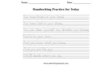 In this ESL worksheet, students trace 14 common expressions heard in a classroom. Students then write the sentences on their own in Zaner-Bloser style printing.