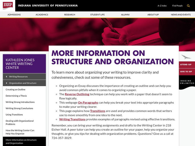Indiana University of Pennsylvania: Writing Center: Structure and Organization