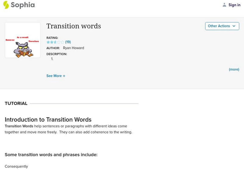 A variety of presentation formats including notes, a PowerPoint presentation, exercises, a game, and a video [1:46] explaining transition words and their function as well as providing examples of transition words to be used for specific...