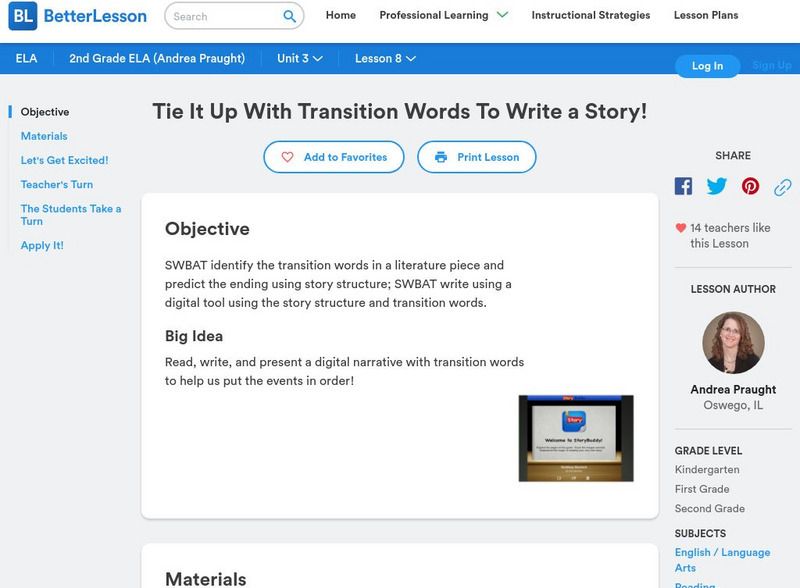 Better Lesson: Tie It Up With Transition Words to Write a Story!
