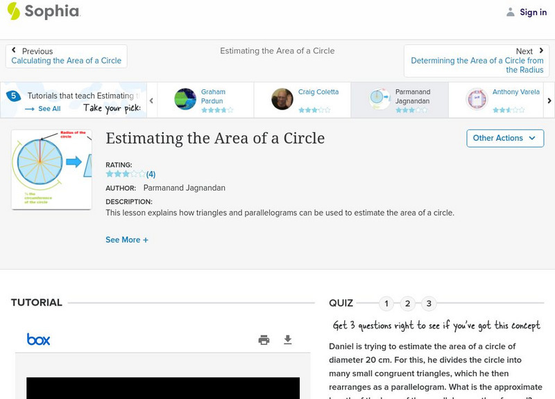 Sophia: Estimating the Area of a Circle: Lesson 4