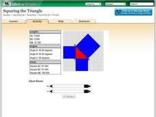 Teach budding mathematicians how to square a triangle with an interactive that shows a graphical proof of the Pythagorean Theorem. Pupils alter the lengths of the legs using sliders. Using the inputted lengths, the applet displays the...