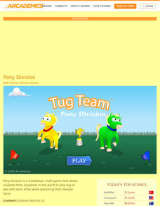 Divided we pull. Pupils play an online game to practice division facts. With each correct response, the players' ponies pull just a little more in a tug of war.